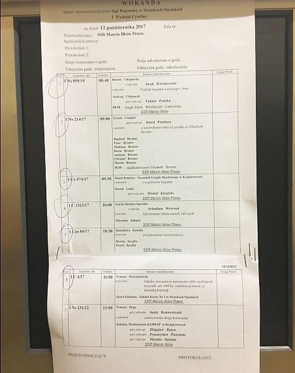 Do zdarzenia doszło dnia 12.10.2017 r w Sądzie Rejonowym w Strzelcach Opolskich, co widać na załączonym filmie. Wtedy odbywała się ostatnia rozprawa dotycząca przebiegu drogi dojazdowej do firmy Tomasza Dygi o nazwie Ergo Pack w Krapkowicach.